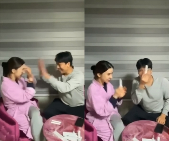 공개된 영상에는 코로나19 자가진단키트 검사를 하고 있는 김동성, 인민정 부부의 모습이 담겨 있다. 김동성은 검사를 위해 코를 직접 찌르면서 순간 망가진 표정을 지어 폭소를 유발했다. 검사 끝에 시원하게 재채기를 해 웃음을 더했다.