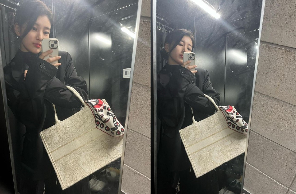 공개된 사진 속 수지는 올림머리를 한 채 검정 코트를 입고 거울 셀카를 찍고 있다. 특히 수지가 들고 있는 명품 가방에는 브랜드 로고 대신 수지의 이름인 'SUZY'가 새겨져 눈길을 끈다.