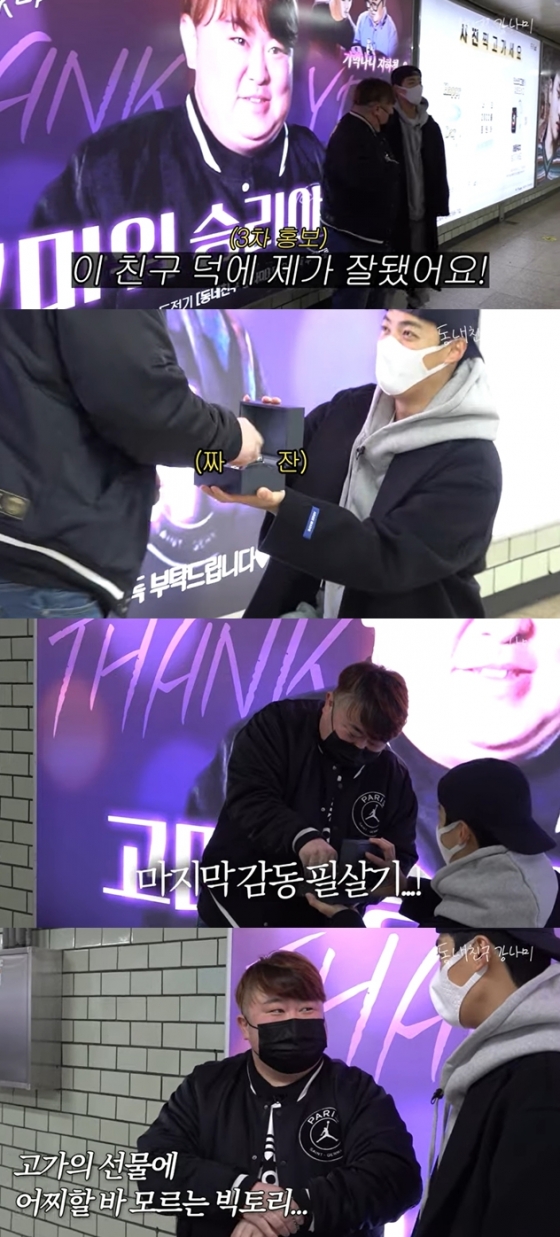 강남은 최승리의 손목에 시계를 직접 채워주며 "너 때문에 잘 됐고, 내 친구가 돼 줘서 고맙다"며 또 한 번 마음을 표현했다. 최승리는 "너무 감동해서 말이 안 나온다"며 고마움을 전했다.