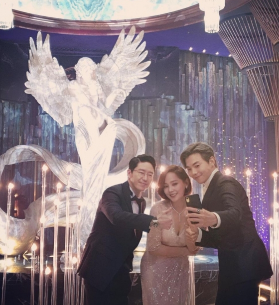 이어 유진은 "단태 윤희 로건 레어샷"이라며 SBS 드라마 '펜트하우스'에서 연기 호흡을 맞췄던 배우 엄기준, 박은석과 찍은 사진을 올려 눈길을 끌었다. 유진은 글래머러스한 몸매가 드러나는 드레스를 입고 아름다운 매력을 발산했다.
