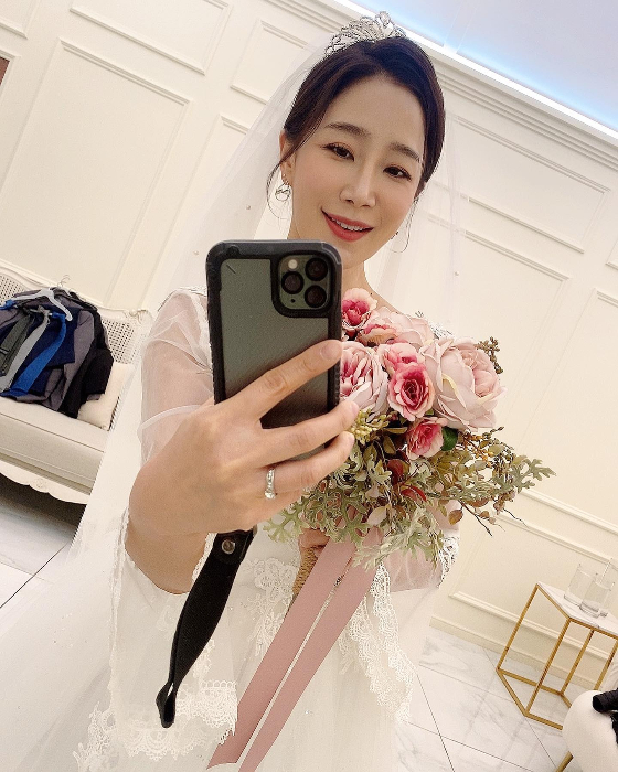 배우 김하영이 미모가 돋보이는 웨딩드레스 자태를 공개했다.