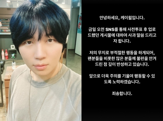 케이윌은 4일 자신의 인스타그램을 통해 "저의 무지로 부적절한 행동을 하게 되어, 팬분들을 비롯한 많은 분들께 불편을 안겨 드린 점 깊이 반성하고 있다"고 밝혔다.