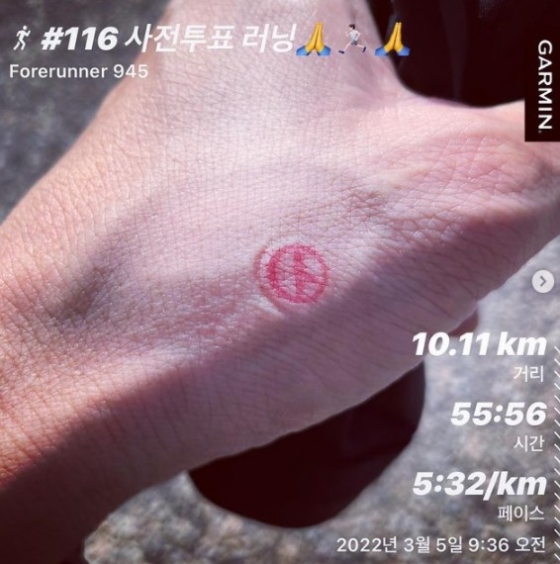 그는 "사전투표 러닝으로 고고. 더나은 대한민국을 위하여 나의 작고 소중한한표가 큰힘이되길 바래본다. 다함께 투표합시다!!! 꼭!!!!!!! #런린이#사전투표#꼭투표합시다#마라닉tv#마라닉프렌즈#달리면행복해져요#할수있다대한민국 #할수있다우크라이나"라고 적었다.