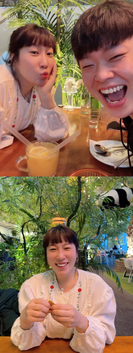 공개된 사진 속에는 주말을 맞아 만난 남편 윤승열과 함께 호라짝 웃고 있는 김영희의 모습이 담겨 있어 훈훈함을 안긴다.