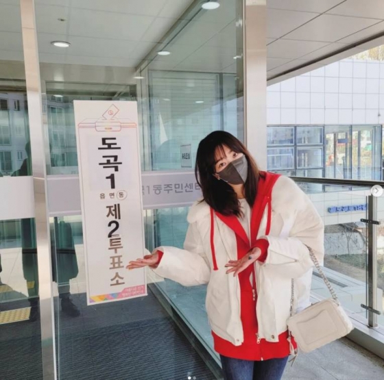 배슬기는 9일 인스타그램에 "#투표인증 서울경기 투표율이 낮다고 합니다. 여러분의 소중한 한 표. 꼭 행사해 주세요!!"라는 글과 함께 사진을 올렸다.