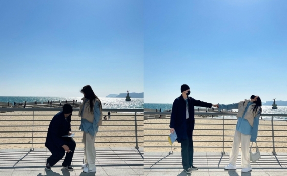 공개된 사진 속에는 자이언트핑크와 남편 한동훈이 바다를 배경으로 손을 맞잡으며 애정 가득한 분위기를 자아내 눈길을 끌었다.
