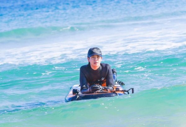 15일 정동원은 자신의 인스타그램을 통해 "동원아 여행 가자. 오늘 제 서핑 실력 다 같이 보실래요?"라는 글과 함께 사진을 게재했다.