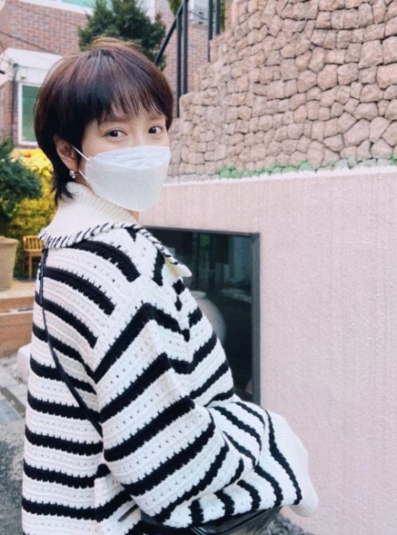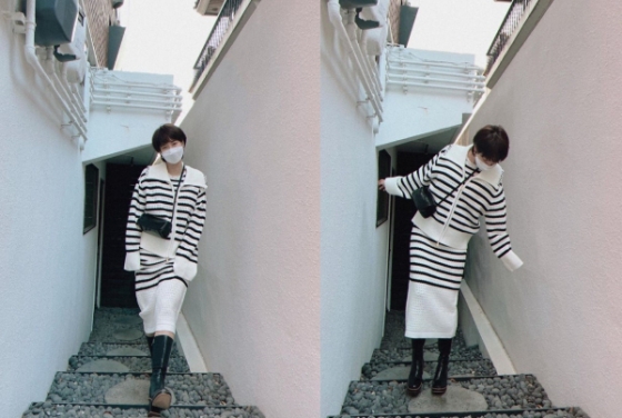 공개된 사진 속 송지효는 줄무늬 니트 원피스에 가디건을 입고 포즈를 취하고 있다. 카메라를 응시하는 청초한 송지효의 눈빛이 눈길을 끈다.
