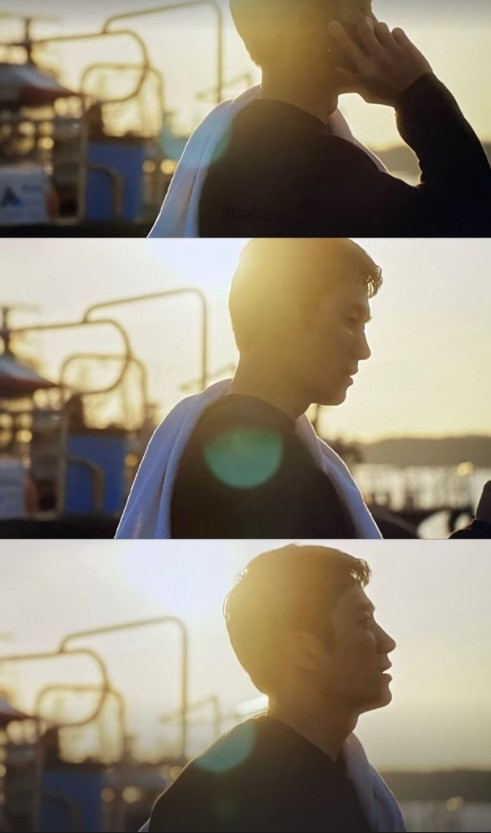 공개된 사진 속 안보현은 수건을 어깨에 걸친 채 검정색 티를 입고 먼 곳을 응시하고 있다. 안보현 뒤로 보이는 태양광과 이에 강조돼 안보현의 날렵한 옆선이 눈길을 사로잡았다.
