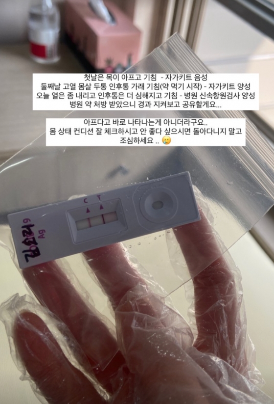 소리는 이어 "(코로나19 확진 이후) 첫날은 목이 아프고 기침 자가키트 음성. 둘째날 고열 몸살 두통 인후통 가래 기침(약 먹기 시작) 자가키트 양성. 오늘 열은 좀 내리고 인후통은 더 심해지고 기침-병원 신속항원검사 양성"이라며 "병원 약 처방 받았으니 경과 지켜보고 공유할게요"라고 적었다