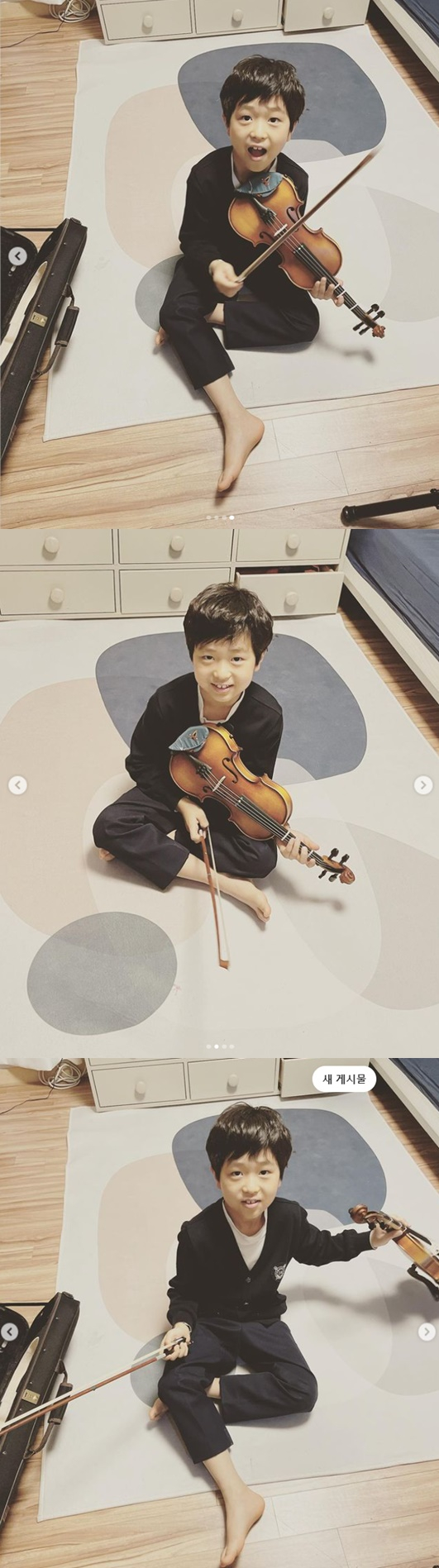 공개 된 사진 속 승재는 집에서 바이올린을 든채 포즈를 취하고 있다. 올해 9살 된 승재는 마치 바이올린 신동이 된 듯 바이올린과 자연스러운 모습이라 귀여워 보인다.