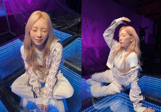 공개된 사진 속 태연은 보라색 에메랄드빛 조명이 있는 스튜디오에서 트레이닝복을 입은 채 포즈를 취하고 있다. 카리스마 있는 듯한 섹시한 표정과 상큼한 눈웃음을 넘나들며 팔색조 매력을 선보이고 있다.