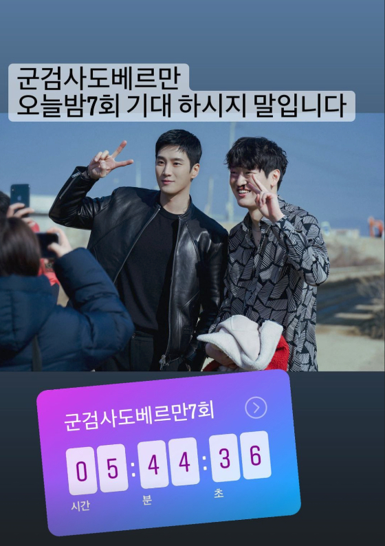 21일 안보현은 자신의 인스타그램 스토리를 통해 "군검사 도베르만. 오늘 밤 7회. 기대하시지 말입니다"라는 글과 함께 한 장의 사진을 게재했다.