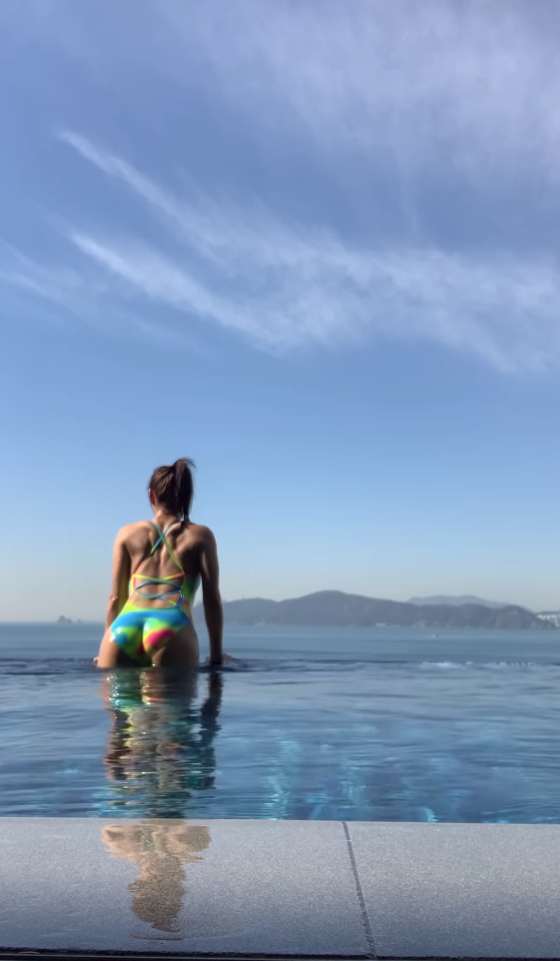 공개된 동영상 속 강소연은 다채로운 형광색 수영복을 입고 카메라를 보며 미소를 띠고 있다. 다른 영상에는 강소연의 근육질 뒤태가 눈길을 끈다.