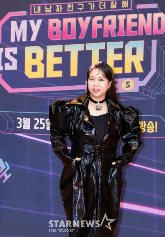코미디언 홍현희가 25일 오후 온라인 생중계로 진행된 엠넷 새 예능 'MY BOYFRIEND IS BETTER' 제작발표회에 참석해 포즈를 취하고 있다.