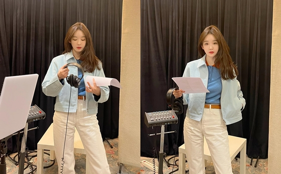 또 다른 사진에서는 녹음을 준비하는 강민경의 모습이 담겼다. 귀여움과 깜찍한 강민경은 '인형'이라고 해도 무방할 미모로 팬들의 시선을 사로잡았다.