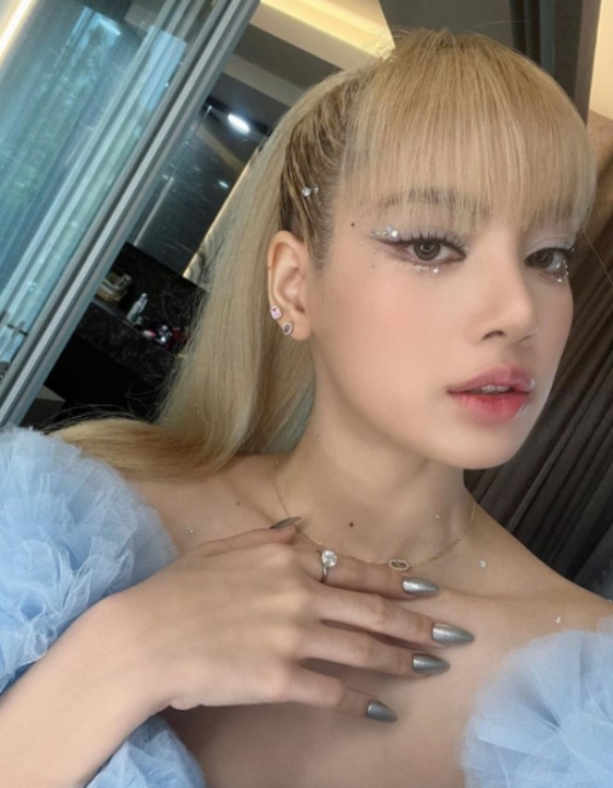 공개된 사진 속 리사는 하늘색 크롭톱 오프숄더와 미니 스커트를 입고 포즈를 취하고 있다. 3단 케이크와 풍선과 꽃으로 잔뜩 꾸며진 파티 공간이 눈길을 끈다.