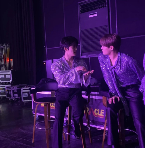 공개된 사진 속 김재중은 화려한 반짝이 의상을 입고 팔짱을 낀 채 카메라를 응시하고 있다. 다른 사진에는 김준수와 함께 대화하고 있다. 날씬한 몸매와 두 사람의 날렵한 턱선이 눈길을 끈다.