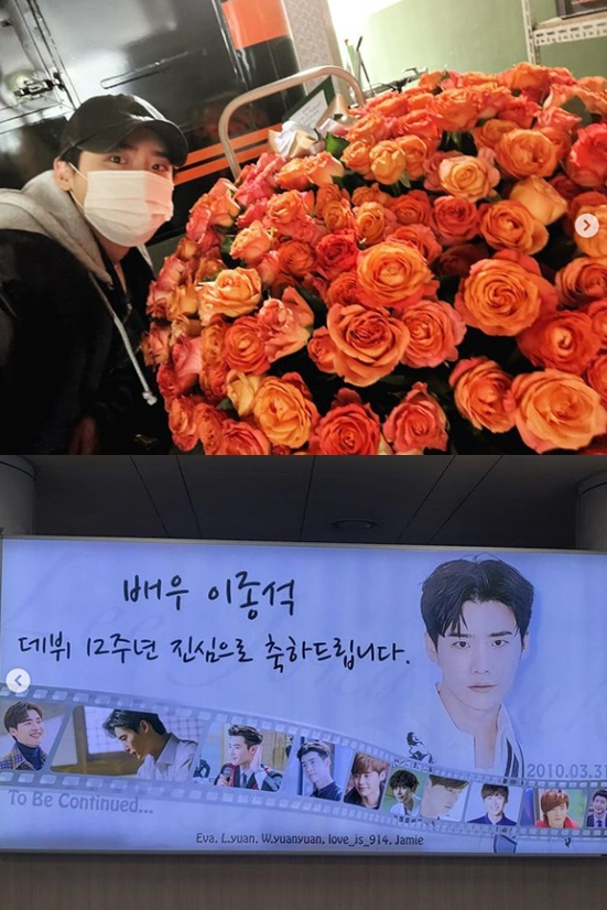 이종석은 지난 3월 31일 자신의 인스타그램에 "감사합니다"라는 글과 함께 사진을 게재했다. 공개 된 사진 속 이종석은 자신의 얼굴크기 만큼 큰 꽃망울을 자랑하는 장미꽃 다발 옆에서 미소짓고 있다. 셀수도 없이 많은 장미꽃이 그를 향한 팬들의 사랑을 느끼게 한다. 이어 이종석은 "데뷔 12주년 진심으로 축하드립니다"라는 글도 함께 올렸다.