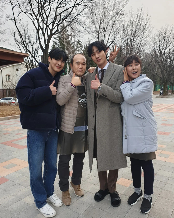 공개된 사진에는 김광규가 SBS 월화드라마 '사내맞선'에 함께 출연한 최병찬, 안효섭, 정영주와 함께 찍은 모습이 담겼다.