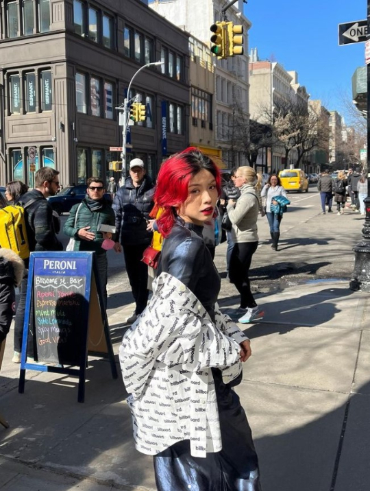 공개된 사진 속 아이키는 뉴욕의 거리에서 광택감 있는 검정 비대칭 드레스를 입고 싸이 하이 레더 부츠를 착용한 채 포즈를 취하고 있다. 카메라를 향해 자연스럽게 뒤를 돌아보는 아이키의 모습이 런웨이를 연상케 한다.
