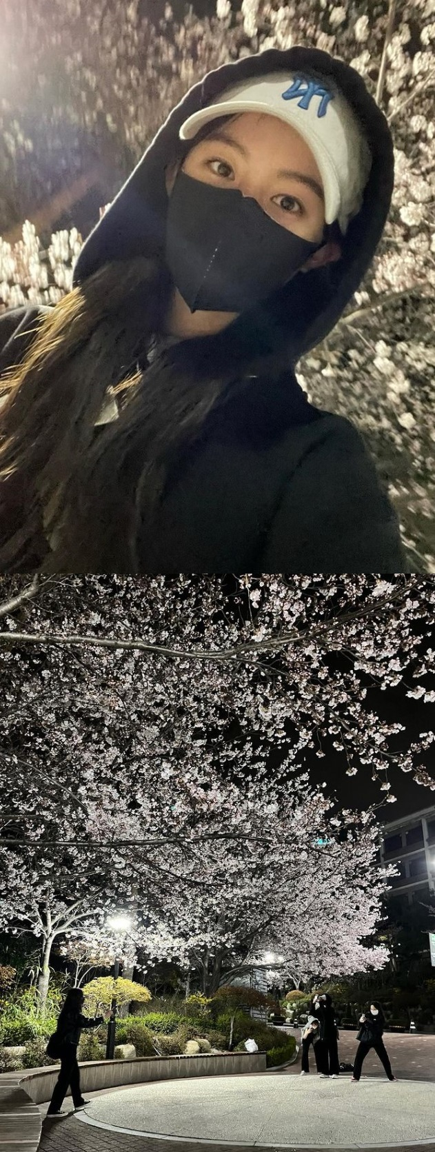 공개된 사진 속 박지후는 검정 후드에 흰 캡모자를 쓴 채 셀카를 찍고 있다. 다른 사진에는 박지후가 친구들과 함께 벚나무 밑에서 사진을 찍고 있다.