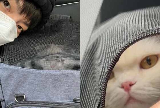 공개된 사진 속 안재현은 마스크를 낀 채 케이지 안에 든 반려묘 안주와 함께 셀카를 찍고 있다.