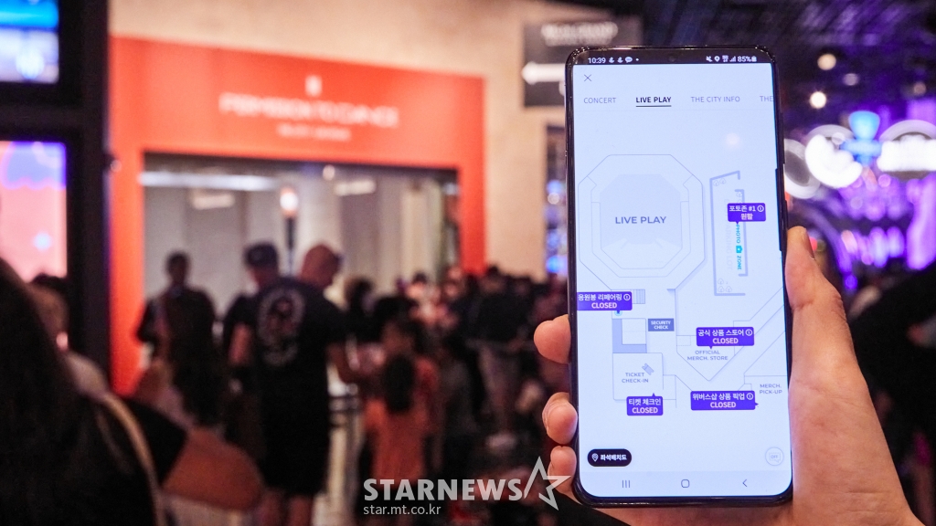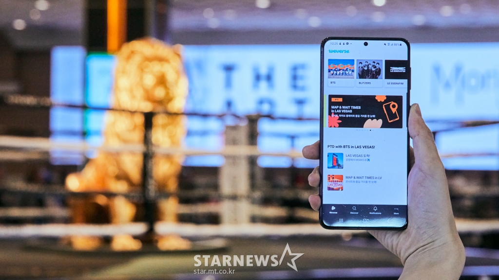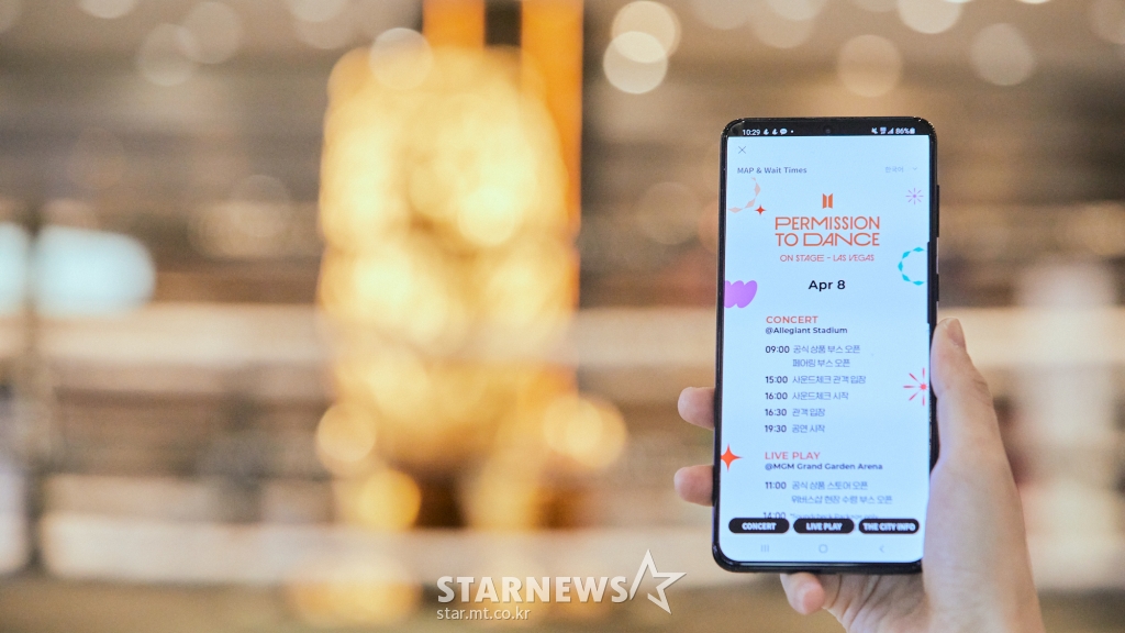 방탄소년단의 콘서트 '퍼미션 투 댄스 온 스테이지'가 라스베가스에서 진행중인 가운데 팬 커뮤니티 앱 '위버스'의 '맵 & 웨이트 타임즈' 기능이 서비스되고 있다.
