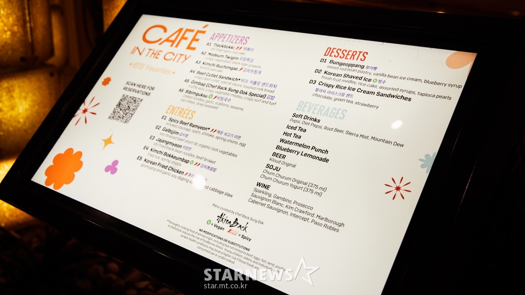 방탄소년단의 콘서트 '퍼미션 투 댄스 온 스테이지'가 열리는 라스베가스 만달레이 베이 호텔 내 레스토랑에 BTS가 즐겨먹는 한식 요리들을 코스로 제공하는 '카페 인 더 시티'가 서비스 되고 있다.
