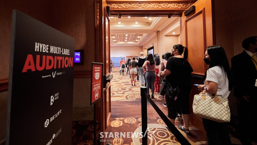 방탄소년단의 콘서트 '퍼미션 투 댄스 온 스테이지'가 열리는 라스베가스에서 하이브 멀티 레이블 오디션이 진행되고 있다.