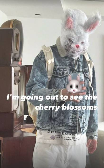 공개된 사진에서 탑은 캐주얼 차림에 토끼 탈을 쓰고 봄나들이 준비를 한 모습.