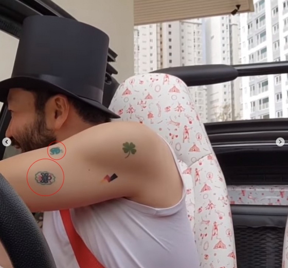 시선을 모은 부분은 민소매 티셔츠를 입어서 드러났던 노홍철 팔뚝에 '무한도전' 로고와 해골 문양 등이 새겨져 있는 것이었다.