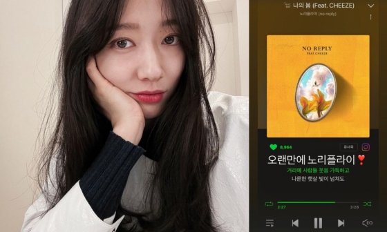 공개된 사진 속엔 노리플라이의 '나의 봄'을 스트리밍하고 있는 화면이 담겨있다. 그는 곡에 '좋아요'도 누르며 노래를 즐기고 있는 모습이다.