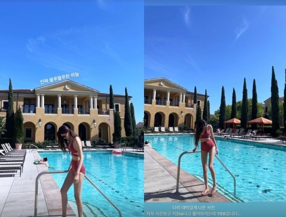 공개된 사진 속 이가흔은 넓은 수영장에서 비키니를 입고 포즈를 취하고 있다. 특히 그의 완벽한 비율과 다리 길이가 돋보여 이목을 끈다.