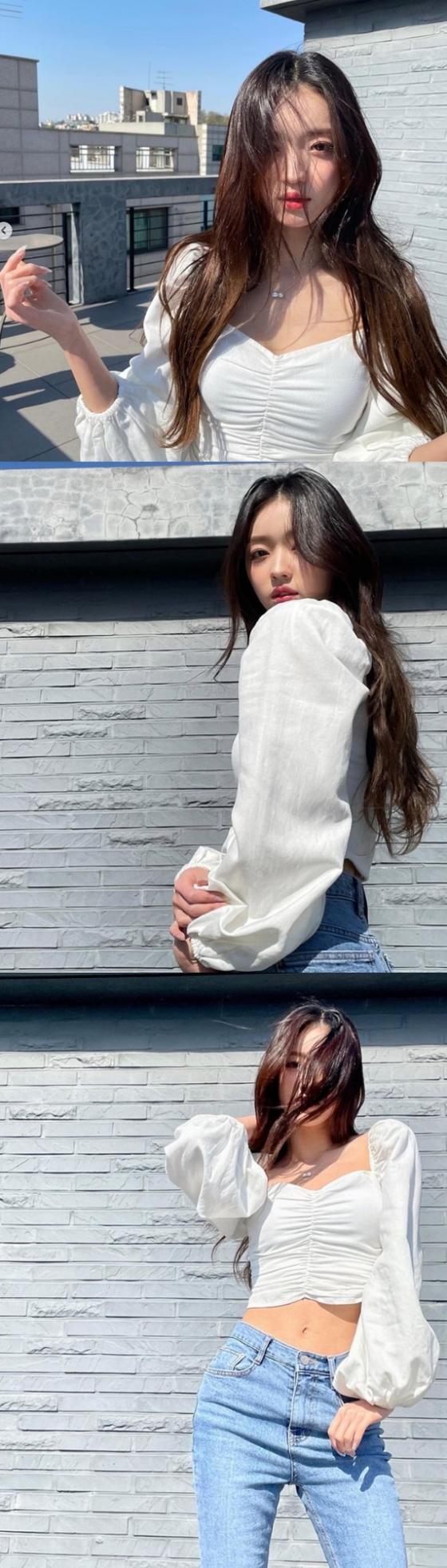 공개 된 사진 속 유아는 바람이 부는 햇살 아래 포즈를 취하고 있다. 더 핼쓱해진 모습과 아련한 눈빛이 시선을 사로잡는다. 바람이 불면 날아갈 듯한 가녀린 몸매다.