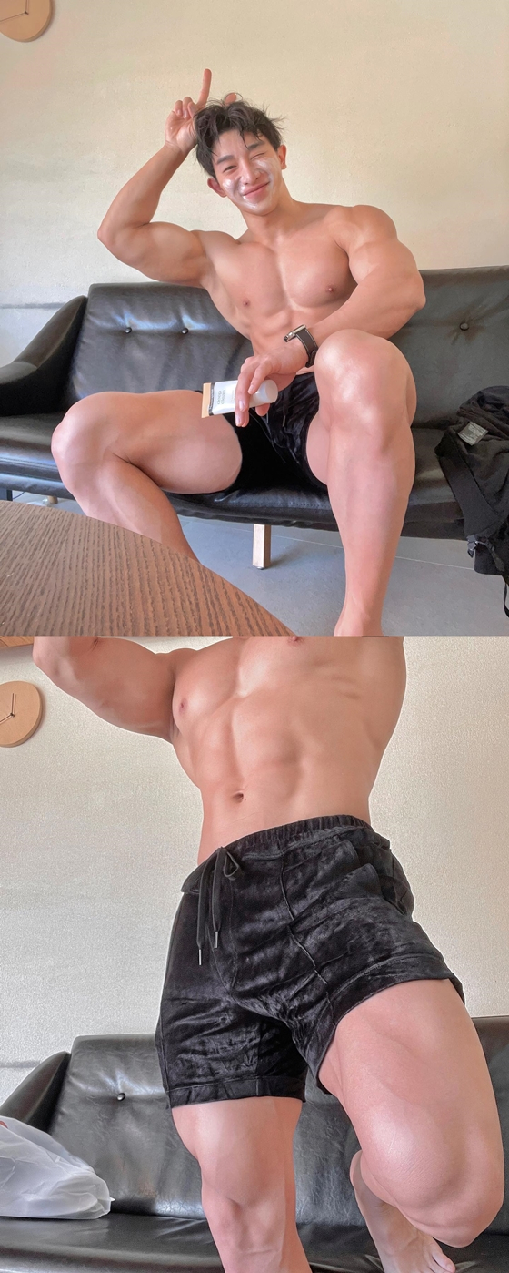공개된 사진에는 원호가 상의 탈의, 반바지만 입은 모습이 담겼다. 파격 노출과 함께 원호는 울끈불끈한 근육을 드러냈다. 팔, 다리, 복근까지 그야말로 근육으로 가득했다.