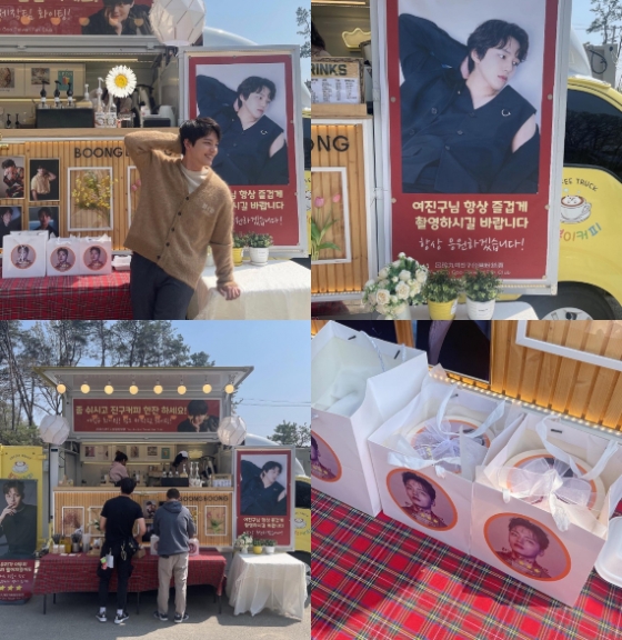 공개된 사진 속 여진구는 팬들이 보내준 커피차 앞에서 자신의 얼굴이 새겨진 배너와 같은 포즈를 취하며 웃고 있다. 다른 사진에는 커피차를 이용하고 있는 스태프들과 선물꾸러미가 든 쇼핑백이 담겨 있다.