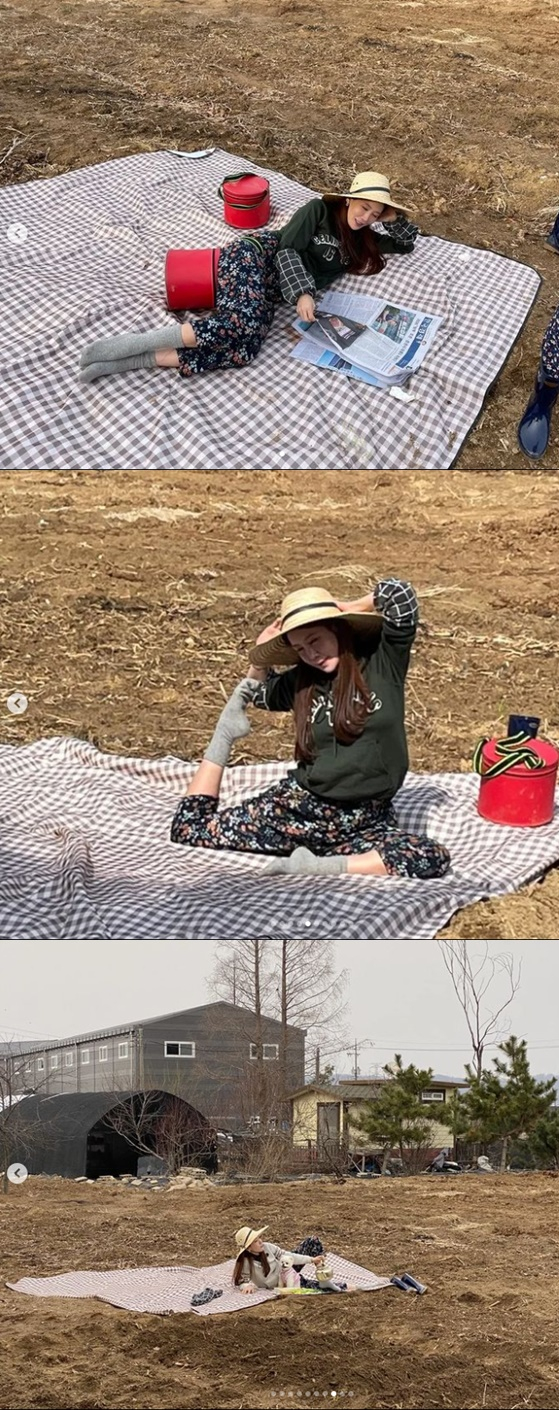 배우 김정은이 상추 밭에 자리 깔고 누운 모습으로 눈길을 끌었다.