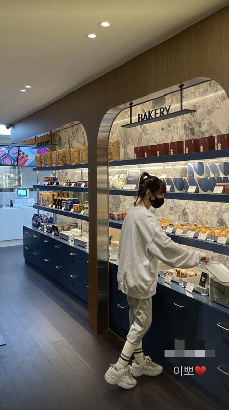 공개된 사진 속 강예원은 마스크를 착용하고 빵집을 방문한 모습이다. 특히 그의 회색 트레이닝 복 착장이 돋보여 이목을 끈다.