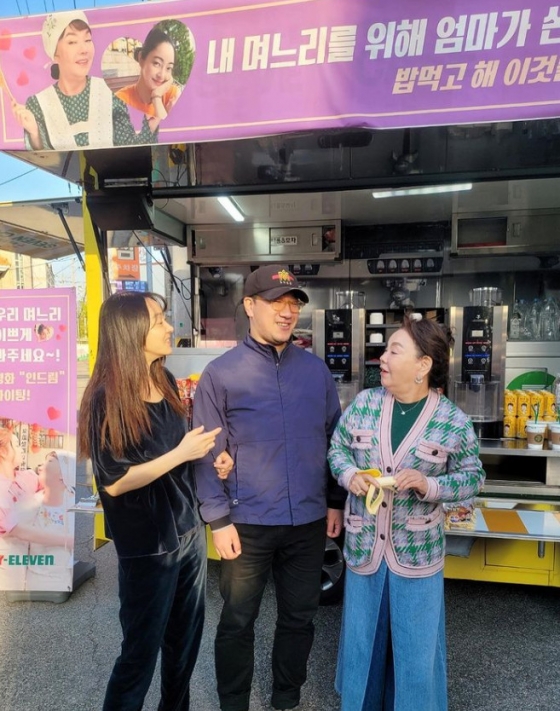 밥차 현수막에는 "내 며느리를 위해 엄마가 쏜다", "우리 며느리 예쁘게 봐주세요" 등 사랑 가득한 멘트가 적혀있다. 김수미는 서효림을 바라보며 애정을 쏟고 있다.