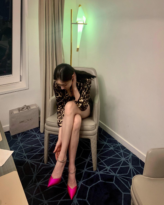 공개된 사진에는 의자에 앉아 있는 류화영의 모습이 담겼다. 류화영은 호피무늬 상의를 입고 있다.