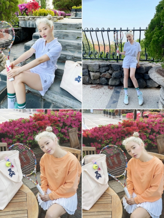 또 다른 사진에서는 오렌지 컬러의 상큼한 맨투맨에 화이트 테니스 스커트를 매치, 상큼한 과즙미를 뽐내며 남심을 설레게 했다. 새하얀 피부와 늘씬한 몸매로 스포츠복을 발랄하게 소화한 패션 센스에 네티즌들은 "요정이세요?", "이 비주얼 마치 인형 재질", "과연 '테니수아' 다운 매력이 폭발 중!"이라며 뜨거운 반응을 보냈다.