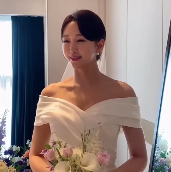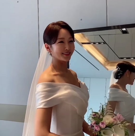 한영은 26일 자신의 인스타그램을 통해 웨딩드레스를 입고 활짝 웃고 있는 자신의 영상을 공개했다.