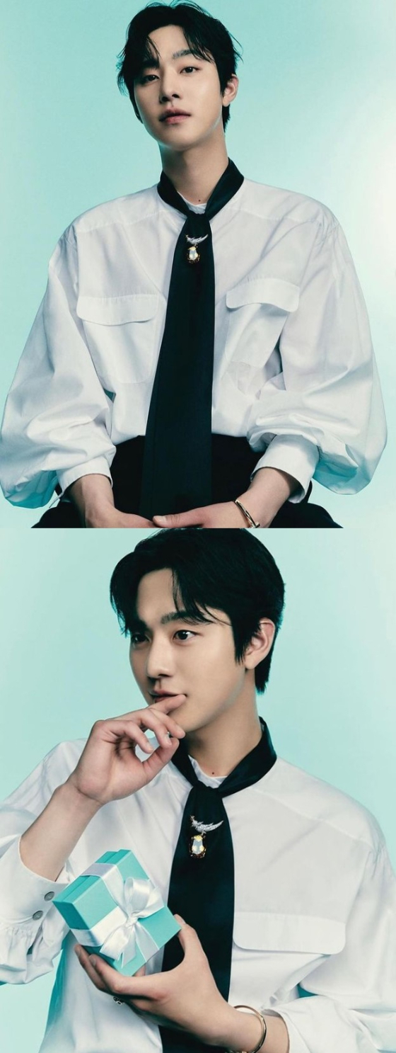 공개된 사진 속 안효섭은 오버핏 흰색 셔츠에 검정 넥타이를 두른 채 무표정으로 카메라를 응시하고 있다. 다른 사진에는 안효섭이 입가에 미소를 머금고 있다.