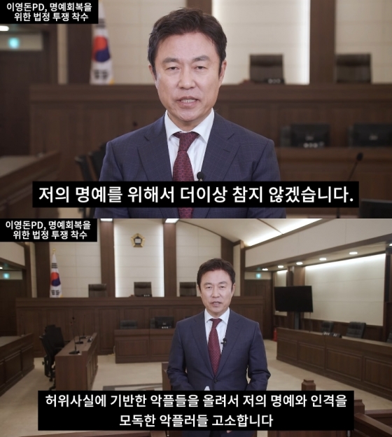 이 PD는 지난 25일 자신의 유튜브 채널에 '이영돈 PD, 법정투쟁 착수'라는 제목의 영상을 게재했다.