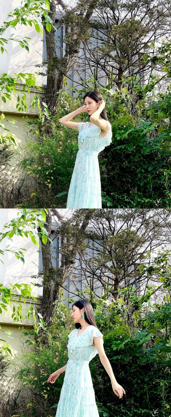 공개된 사진 속 서현은 하늘하늘한 원피스를 입은 채 정원을 배경으로 다양한 포즈를 취하고 있다. 서현은 자연미 가득한 배경과 어울리는 녹색빛이 도는 귀걸이와 원피스를 착용하며 마치 숲 속 여신과 같은 분위기를 발산했다.