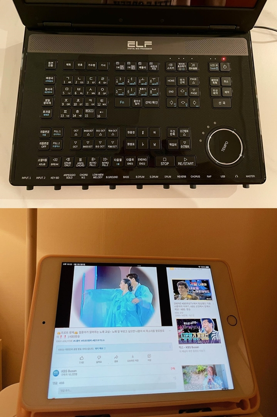 공개된 사진에는 유튜브 채널 KBS Busan에 2020년 9월 18일 게재된 '트로트 황제 젊훈아가 알려주는 노래 교실~ 노래 잘 부르고 싶으면 나훈아 씨 목소리를 팔로팔로미! KBS방송'이란 제목의 영상이 담겼다. 또한 노래 연습을 위한 반주기의 모습도 담겼다.