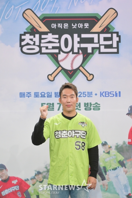 금유성 선수가 6일 오전 온라인 생중계로 진행된 KBS 1TV 새 예능 '청춘야구단: 아직은 낫아웃' 제작발표회에 참석해 포즈를 취하고 있다.