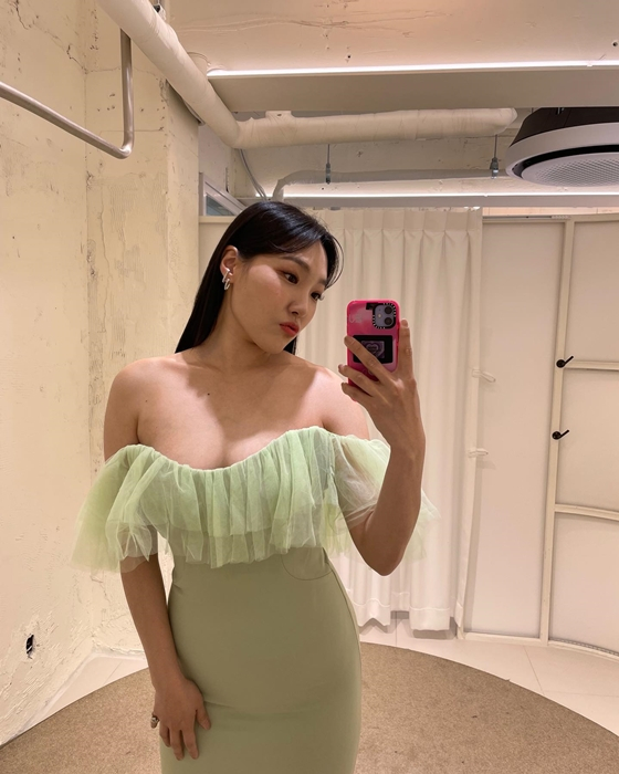 공개된 사진에는 이은지가 어깨를 드레스를 입은 모습이 담겼다. 그는 몸에 착 달라붙은 드레스로 글래머러스한 몸매를 고스란히 드러냈다. 볼륨미 넘치는 몸매는 군살 하나 없다.