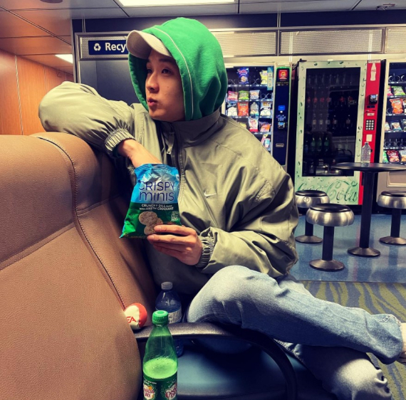 9일 최우식은 자신의 인스타그램을 통해 "Crunch Dill"이라는 글과 함께 사진 한 장을 게재했다.